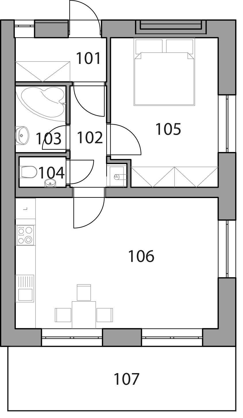 | 107 | Terasa | 12.73 m² |